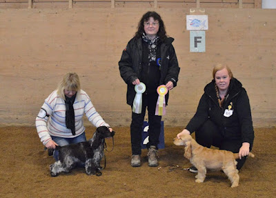 Gick jättebra för dem :-) Först ut var Lilla King i valpklass 1, han vann sin klass med HP av tre st. Sen mötte han tiken som vunnit av tikarna och även där vann han så han blev BIR :-)